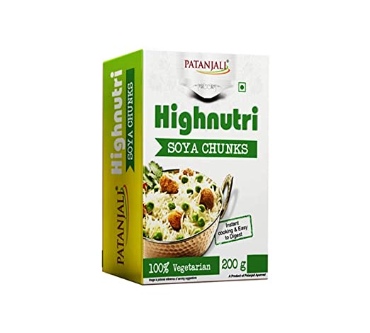 Patanjali Highnutri Soya Chunks are great Source of Proteins, Vitamin, Calcium, Proteins, Dietary Fibers, 6 Fatty Acid, and Omega 3 which help to enhance the mind and body. These can be instantly cooked and are easy to digest. They are 100% Vegetarian, Protein Rich and Heart Friendly.