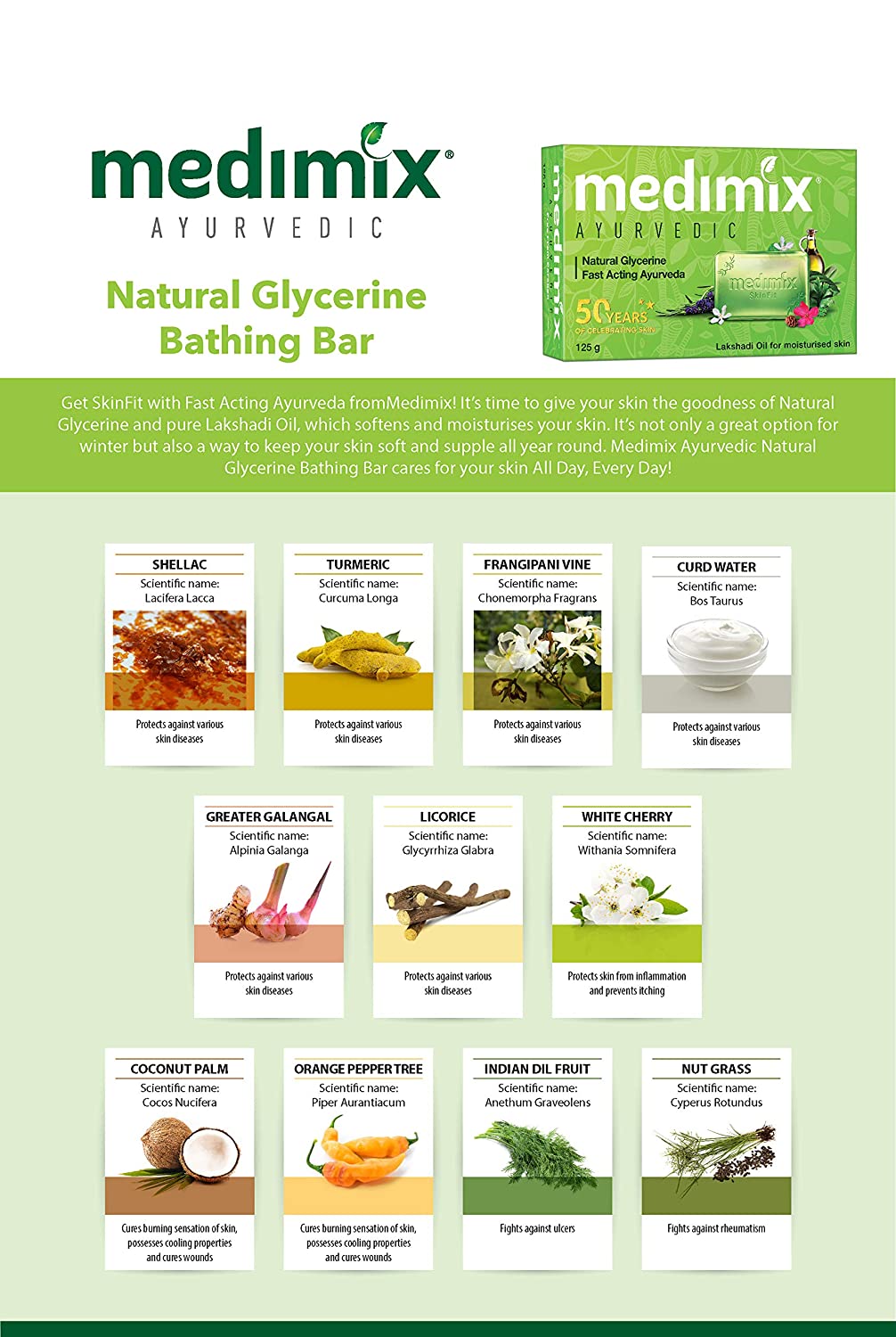 MEDIMIX AYURVEDIC NATURAL GLYCERINE FAST ACTING AYURVEDA SOAP 125GM