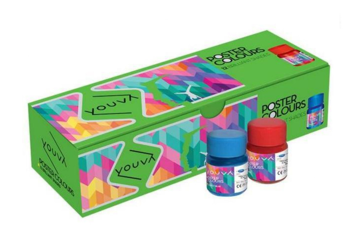 Youva Poster Colours - Pack of 12 Bottles of 10ml each
